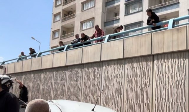 Hatay'da takla atarak ters dönen araçta bulunan 2 kişi yaralandı. Kaza sonrası üst geçitte bulunan vatandaşlar kazayı meraklı gözlerle film gibi izlediler.