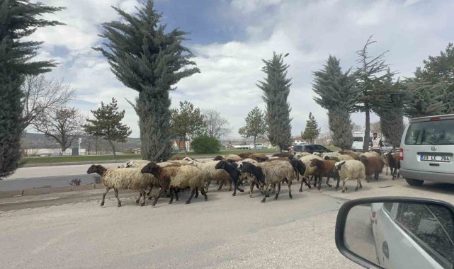 Elazığ'da yoğun trafik akışı içinde ilginç anlar yaşandı. Şehir merkezinde seyir halindeki araçlar, aniden karşılarına çıkan bir koyun sürüsüyle karşılaştı. Sürü yolun ortasından geçerken sürücüler şaşkınlık içinde beklemek zorunda kaldı. Olay, cep telefonu kameralarına yansıdı. Görüntülerde, koyunların sakince ilerlediği, sürücülerin ise yolun açılmasını beklediği anlar yer aldı. Trafikte kısa süreli aksaklık yaşanmasına rağmen, sürü çobanlarının müdahalesiyle koyunlar güvenli bir şekilde yolun karşısına geçirildi.