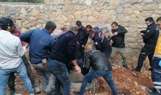 Muğla'nın Bodrum ilçesinde 4 metre derinlikteki beton büz içine düşen vatandaş itfaiye ekipleri tarafından halat yardımı ile kurtarıldı.