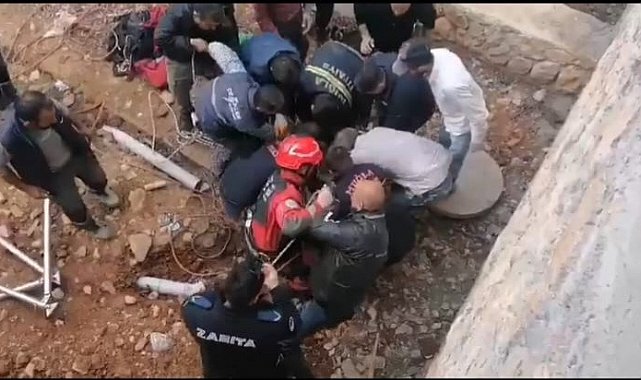 Kuyuya düşen işçiyi itfaiye kurtardı
