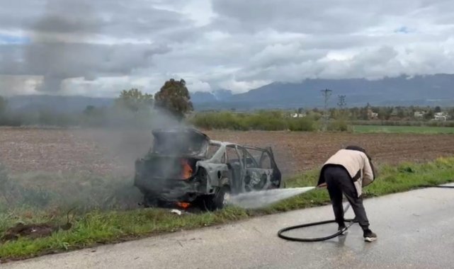 Osmaniye'nin Düziçi ilçesinde seyir halindeyken alev alan otomobildeki yangın, itfaiye ekiplerince söndürüldü.