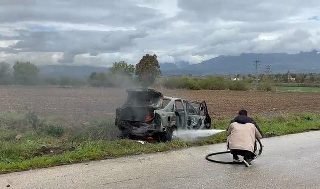 Osmaniye'de seyir halindeki otomobil yandı