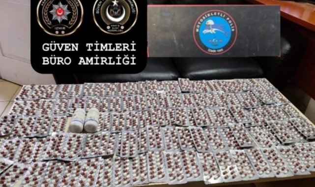 İzmir Asayiş Şube Müdürlüğü Güven Timleri Büro Amirliği ve Motosikletli Polis Timleri Amirliği ekipleri, Bayraklı ilçesinde yaptıkları uygulamada şüphe üzerine bir otomobili durdurdu. Otomobildeki M.Y.'nin (29) şüpheli davranışları üzerine otomobilde detaylı arama yapan polis ekipleri, klima ızgarasını kontrol etti. Yapılan kontrolde buradan bin 791 adet uyuşturucu nitelikli sentetik hap ele geçirildi.