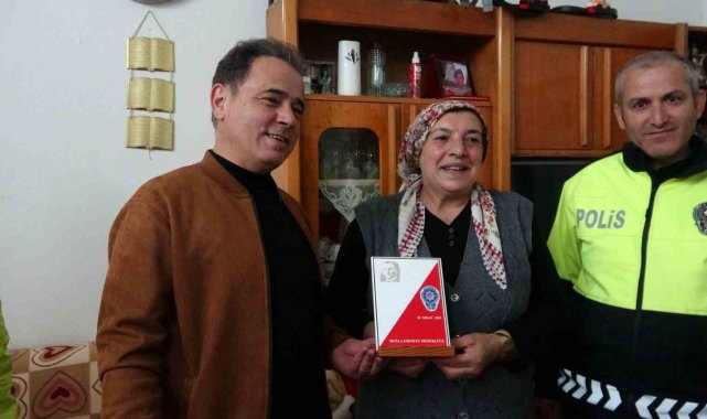 Muğla İl Emniyet Müdürlüğü Bölge Trafik ekipleri, polis helikopterine Türk bayrağı ile selam veren Ayşe Şahin'i evinde ziyaret ederek teşekkürlerini iletti ve küçük bir hediye verdi. Ziyaret esnasında duygusal anlar yaşanırken, Ayşe teyze yaşadığı anları anlattı.