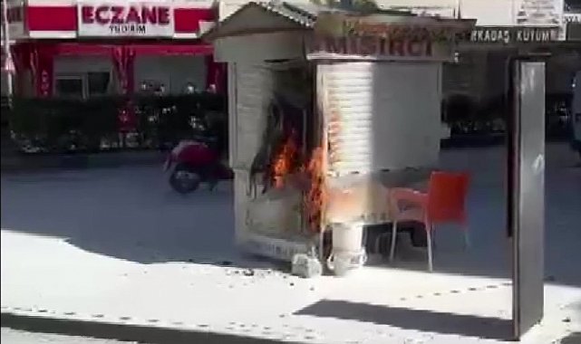 Tüplü seyyar mısır arabası yandı, ilk müdahaleyi vatandaş yaptı