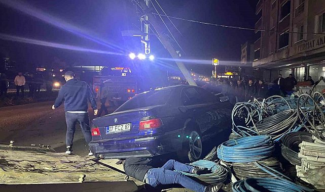 Yoldan çıkan otomobil elektrik direğine çarptı