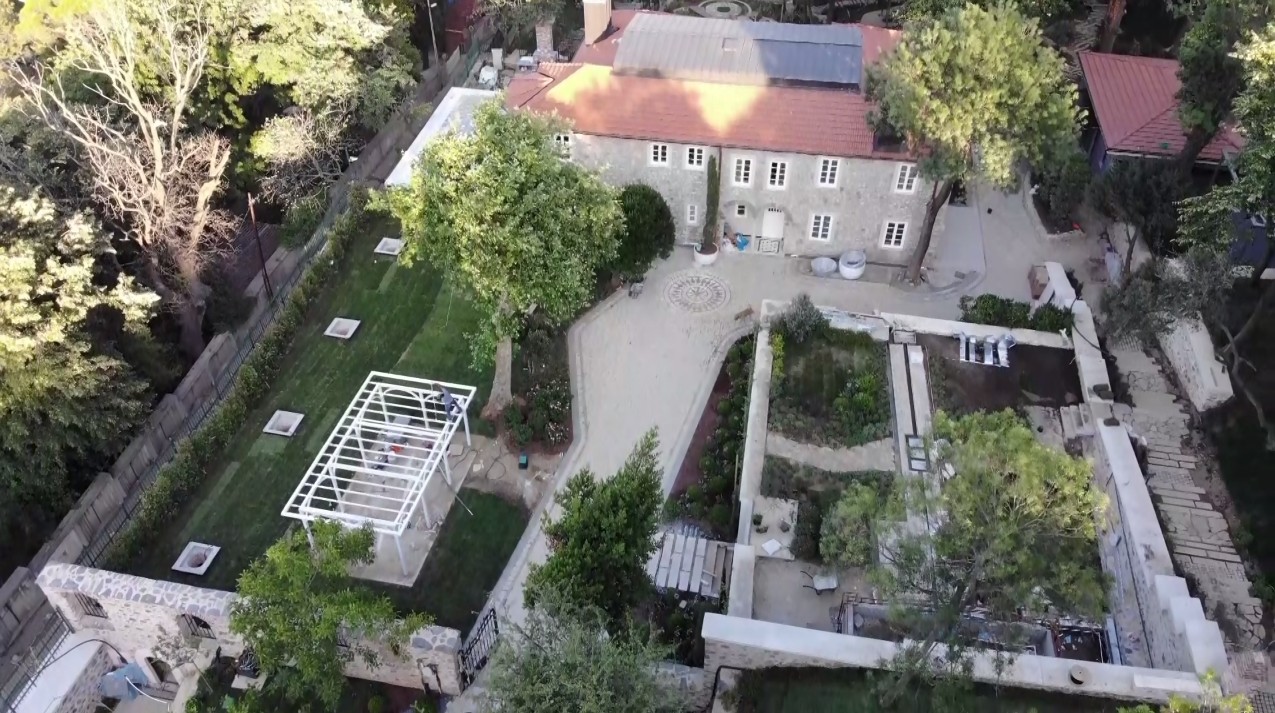 Çalışmaların yapıldığı Fenerli Türbe Sokak'ta bulunan alan drone ile havadan da görüntülendi. Hummalı bir çalışmanın yapıldığı alanda bir kış bahçesinin olduğu, çevre düzenlemesinin yapıldığı görüldü. Bahçede havuz olarak yapılan büyük bir alanında daha sonra kapatılarak fonksiyon değişikliğine gidildiği dikkat çekti.
