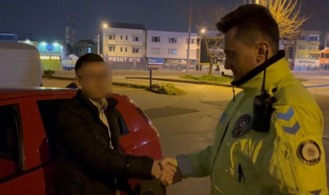 Bursa'da taksicilik yapan bir genç, mesai çıkışı alkol aldıktan sonra denetime yakalandı. Yapılan kontrollerde 0.50 promil ile tam sınırda kalan alkollü sürücüye trafik polisleri ehliyetine el konulacağını söyleyip şaka yaptı. O kahkaha dolu anlar kameraya böyle yansıdı...