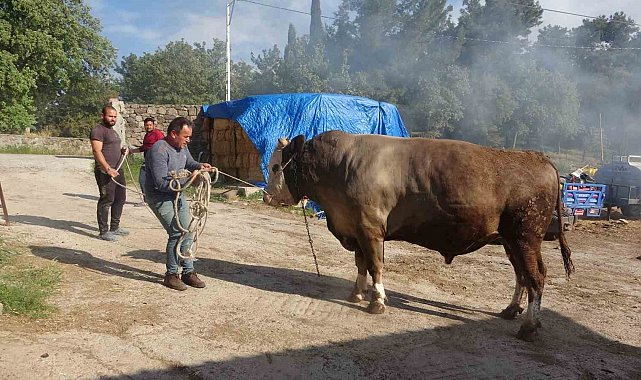 Kurban Bayramı'nın yaklaşmasıyla birlikte Çanakkale genelinde kurbanlıklar görücüye çıkmaya başladı. Ayvacık ilçesine bağlı Paşaköy köyünde, 40 yıla yakındır büyükbaş hayvan yetiştiriciliği yapan Hasan Yavaş'ın (56) 3 yaşındaki simental cinsi boğası 1 ton 500 kilograma ulaştı. Baba mesleği olan büyükbaş hayvan yetiştiriciliğini devam ettiren Yavaş, Kurban Bayramı öncesinde 1 ton 500 kilogram ağırlığındaki boğayı ise 450 bin TL'den satışa çıkardı. Fiyatı yarım milyonu bulan dev boğa, alıcısını beklemeye başladı.