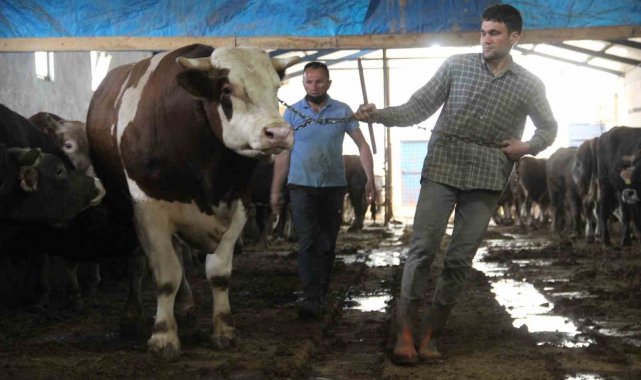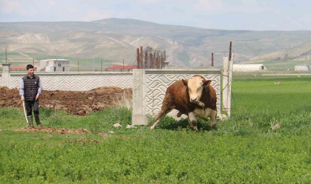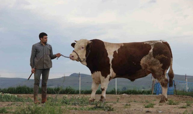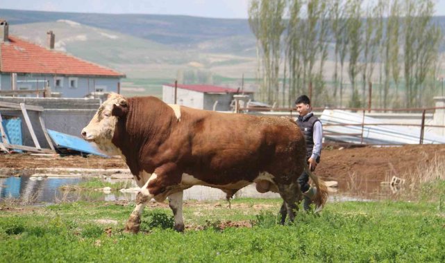 Sivas'ın Altınyayla ilçesinde kurban bayramı için beslenen ve babasının rekorunu geride bırakan dev boğa, fiyatıyla dudak uçuklatıyor.