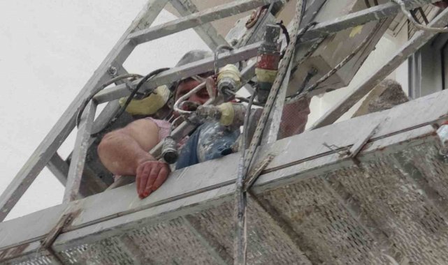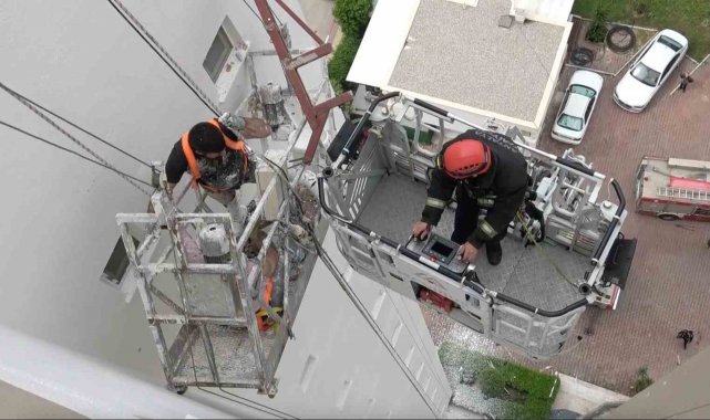 12. katta can pazarı: 2 işçi iskelede mahsur kaldı