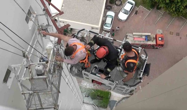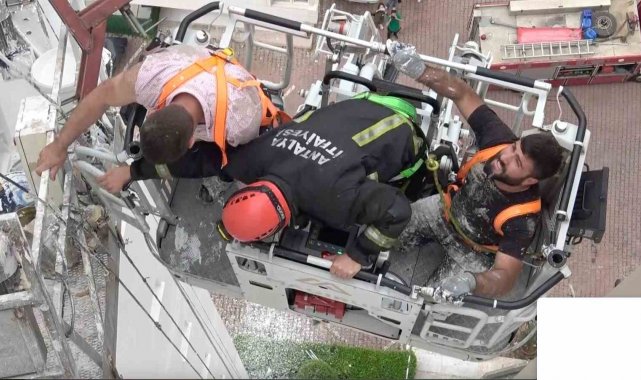 Antalya'da 12. katta kurulan dış cephe iskelesinde duvar yıkıldı, iki işçi metrelerce yüksekte mahsur kaldı. İtfaiye ekiplerinin operasyonuyla kurtarılan işçiler olayı hafif sıyrıklarla atlattı.
