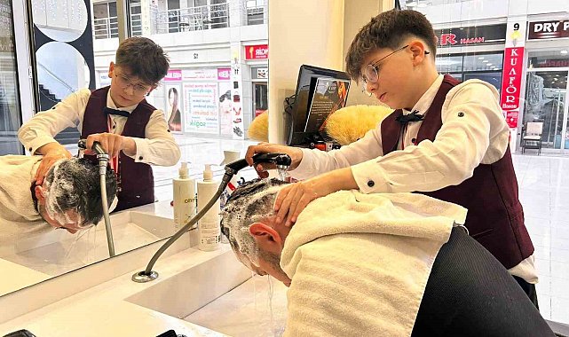 13 yaşındaki kuaför Çınar, küçük yaşına rağmen ustalarına taş çıkarıyor