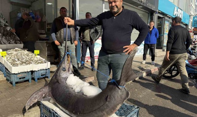 138 kiloluk kılıç balığı ilgi odağı oldu