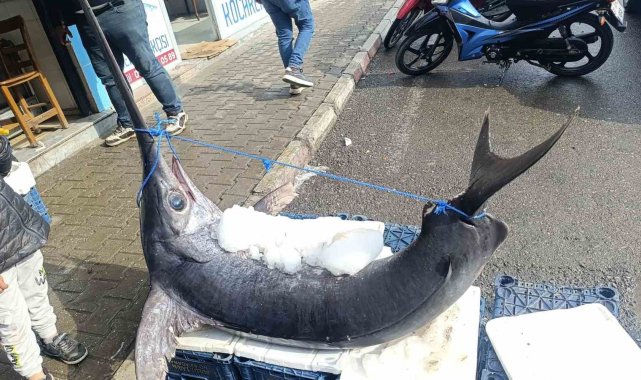 HATAY (İHA) – Hatay'ın Dörtyol ilçesi açıklarında yakalanan 138 kilogram ağırlığa sahip devasa kılıç balığı, vatandaşların ilgi odağı oldu.
