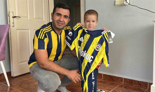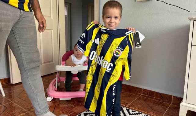 Hatay'da kanseri yenen 3 buçuk yaşındaki Tamer Talha Oğuz'a Fenerbahçeli yöneticilerce imzalı forma hediye edildi.