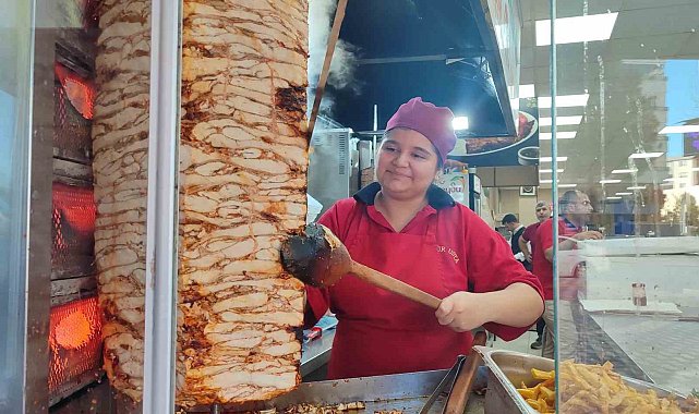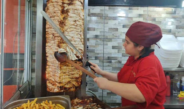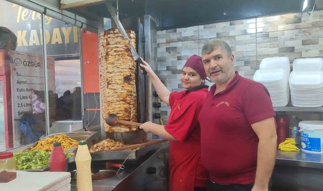 Kahramanmaraş'ta 14 yaşındaki Elif Naz Savran, babasının işlettiği iş yerinde dönerci ustası oldu.