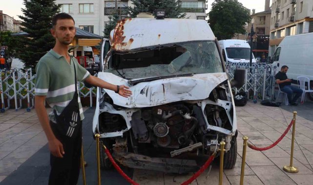 15 Temmuz darbe girişiminde hasar gören minibüs Sivas'ta sergileniyor