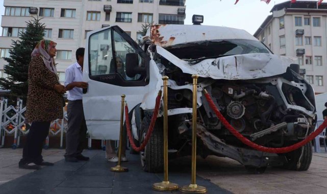 Sivas'ta 15 Temmuz Demokrasi ve Milli Birlik Günü etkinlikleri kapsamında Kongre Müzesi bahçesinde, 2016 yılındaki hain darbe girişimine hasar gören minibüs ziyaretçilerle buluştu.