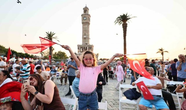 İzmir'de 15 Temmuz Demokrasi ve Milli Birlik Günü'nde gerçekleşen etkinlikte Konak Meydanı vatandaşlar tarafından dolduruldu. Binlerce İzmirlinin tek yürek olduğu etkinlikte 15 Temmuz şehitleri anıldı.