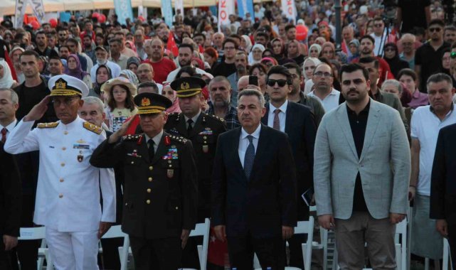Törende konuşma yapan İzmir Valisi Süleyman Elban, 15 Temmuz gecesinin dünyaya bir ders olduğunu belirtti. Vali Elban, "Öyle bir karanlık geceydi ki bu millet tarihinde böyle bir alçaklığı, böyle bir hainliği hiç yaşamamıştır. Kendisi gibi görünen, kendisi gibi yaşayan, kendisi gibi inandığını ve kendisi gibi bu ülkeye bu millete, bu vatana bağlı olduğunu, hatta bazılarının da peygamber ocağında bu ülkenin en kıymetli ocaklarında görünen Ama niyetlerinin çok farklı olduğunu o gece yapılan hain girişimde fark ettik. Ve yaşadığımız o hayal kırıklığı, yaşadığımız o kırgınlık, yaşadığımız o hainliğin getirdiği travma bizim gönül dünyamızda tarihimizde ve hatıralarımızda kapkara bir leke bıraktık. Ve o gece her şeyden şüphe duymaya başladık. Ve o geceyle birlikte insanların inancına, vatan sevgisine, bayrak sevgisine, ezan sevgisine karşıda bir şüphe ortaya çıkartıldı. Bunun adı kapkara bir fitneydi. Ve bu kara fitne maalesef o gece tarihimize geçmiş oldu. Ama bu hain örgütün elemanları kendilerini sinsice yetiştirenlerin öğrettiği her şeyi sonuna kadar öğrenmişlerdi. Ama onların efendileri, onlara bu milletin vatanına, bayrağına, devletine, inancına ne kadar bağlı olduğunu öğretememişlerdir. Dolayısıyla bu millet söz konusu vatan olduğunda, bayrak olduğunda, inancı olduğunda, ortak değerler olduğunda gözünü kırpmadan, tanklara da, mermilere de, toplara da kafa tutacağını onlar hesaplayamamışlardır. Sayın Cumhurbaşkanımızın büyük liderliği, cesareti ve dirayetiyle, bu millet o gece kurulan her türlü oyunları, her türlü hainliği ve her türlü darbe girişimini canı pahasına, kanı pahasına her türlü fedakarlığı göstererek bertaraf etti çok şükür. Ancak bu destansı mücadele tarihimize bir kahramanlık destanı olarak geçti. Ama bu aynı zamanda 253 şehidimize mal oldu. Ve 3 bine yakın gazimize mal oldu. Bu milletimizin gönlünde travmalara mal oldu. Ama bütün bunlar gösterdi ki tıpkı hain terör örgütü FETÖ onun tüm alçak mensupları gibi bu ülkeye düşmanlık besleyenlere o gece bu millet cevabını verdi. Artık bundan sonra hain FETÖ terör örgütü gibi tüm kötü niyetli örgütler boyunun ölçüsünü aldı. Bu milletle artık kimse boy ölçüşemez. Bu millete kimse tuzak kuramaz. Artık bu millete kimse hainlik edemez Biz de her yıl on beş temmuz akşamı bu meydanlara toplanıyoruz. Toplanıyoruz ki bu o gece yaşanan bu kahramanlık öyküsünü tekrar tekrar hatırlayalım. O kahramanların yaptığı fedakar kahramanlığı bir daha dinleyelim. Bir daha izleyelim. Onlarla gurur duyalım. Onların yaptığı fedakarlığa minnet duyalım, şükran duyalım" dedi.
