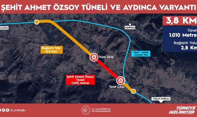 Ulaştırma ve Altyapı Bakanı Abdulkadir Uraloğlu, 15 Temmuz gecesi Türksat'ta şehit düşen Ahmet Özsoy'un adı verilen tünelin 27 Eylül Cumartesi günü hizmete açılacağını açıkladı. Bakan Uraloğlu, Amasya'da yapımı tamamlanan Şehit Ahmet Özsoy Tüneli ve Aydınca Varyantı ile yıllık 50,7 milyon lira tasarruf sağlayacaklarını bildirdi.