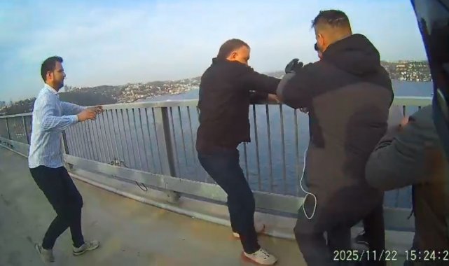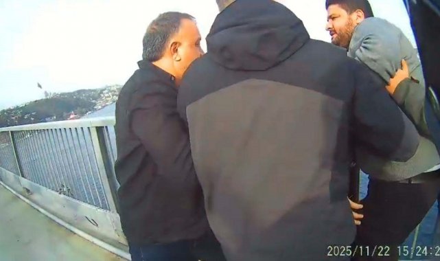 İstanbul'da 15 Temmuz Şehitler Köprüsü'nde intihar girişiminde bulunan bir kişi, polis ekipleri ve vatandaşların ikna çabaları sonucu kurtarıldı. Şahsın kurtarılma anları ise saniye saniye güvenlik kamerasına yansıdı.