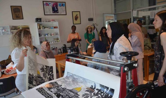 Malatya Turgut Özal Üniversitesi'nin rehberliğinde Malatya'da 20 gün kalacak olan misafirler, Büyükşehir Belediyesi Sanat Merkezi'ni ziyaret ettiler. Sanat Merkezi'nde Ebru Workshop etkinliğine katılan misafirler, keyifli vakit geçirdiler. Misafirler daha sonra, 30 farklı branşta 58 kursun düzenlendiği, yılın her döneminde her yaştan vatandaşlara hizmet vererek sanatsal öğretim ve üretimi sağlayan Sanat Merkezini gezdiler.