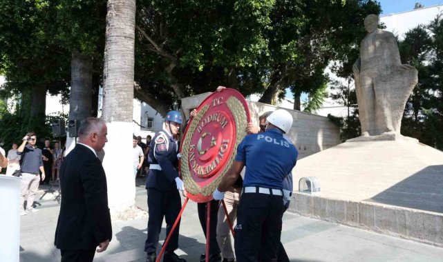 Bodrum Kaymakamlığı tarafından Belediye Meydanı'nda düzenlenen törene Bodrum Kaymakamı Mustafa Çit, Bodrum Belediye Başkanı Ahmet Aras, Bodrum Garnizon Komutanı Personel Albay Ertan Benli, Cumhuriyet Başsavcısı Hasan Dalak, belediye başkan yardımcıları, birim müdürleri, Türkiye Muharip Gaziler Derneği Bodrum Şube Başkanı Hasan Külcü, gaziler, şehit ve gazi yakınları, siyasi parti, STK temsilcileri, Bodrum'daki okullardan müdürler, öğretmenler, öğrenciler ve vatandaşlar katıldı.