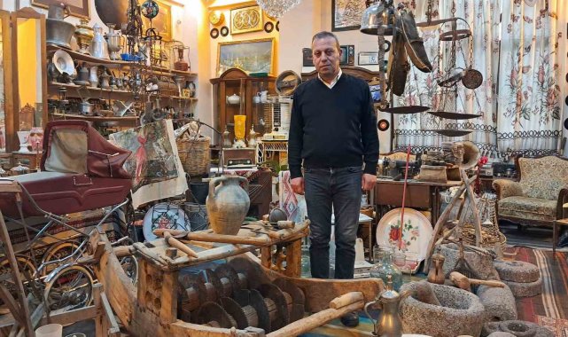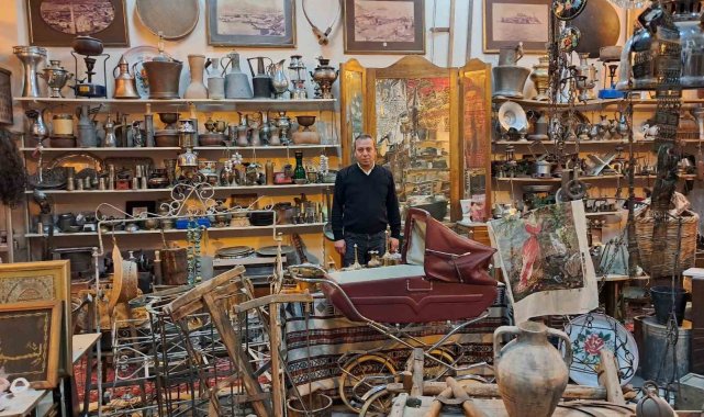 19 yıldır antika biriktirerek dükkanında sergiliyor