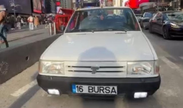 Bursa'yı simgeleyen "16" plakasıyla 5 yıldır New York sokaklarında dolaşan Tofaş, Times Meydanı'nda görenleri hayrete düşürdü.