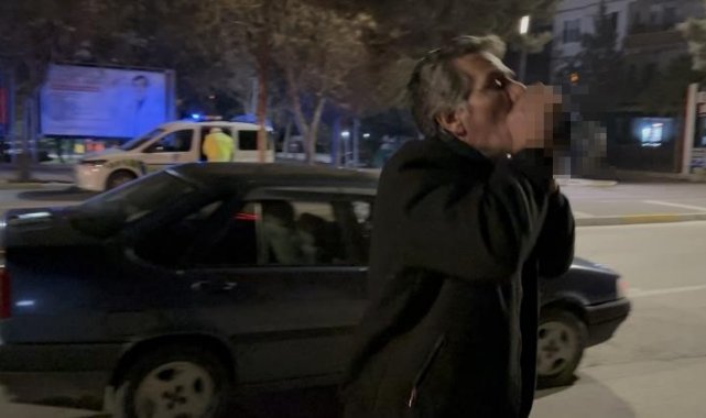 Olay gece yarısı Aksaray'ın en işlek caddesi olan Taşpazar Mahallesi Ebulfez Elçibey Caddesi üzerinde yaşandı. Edinilen bilgiye göre, İl Emniyet Müdürlüğü Trafik Tescil ve Denetleme Şubesi ekipleri gece yarısı cadde üzerinde alkol uygulaması başlattı. Şehir merkezi istikametine gerçekleştirilen uygulamada durumunda şüphelenilen 41 ACU 003 plakalı otomobil durduruldu. Direksiyon başında elinde alkol şişesiyle birlikte polise yakalanan 56 yaşındaki Osman K. isimli sürücü polis memurlarınca araçtan indirildi. Ayakta durmakta bile güçlük çeken sürücü araçtan indirilse de aklı araç içindeki içki tenekesinde kaldı. Polis ekiplerinin alkol metreyle yaptığı ölçümde sürücü 2.14 promil alkollü çıktı. Güçlükle de olsa araca uzanarak içki tenekesini alan sürücü hiçbir şey olmamış gibi polis memurları ve basın mensuplarının karşısında içmeye devam etti. Gazetecilerin "Neden alkollü araç kullanıyorsunuz?" sorusuna "Vallahi canım çok sıkkın" diye cevap veren sürücü polis ekiplerine de ecel teri döktürdü. Polis memurunun içti tenekesini bırakmasını istemesi üzerine "Sen mi verdin parasını?" dedi. Gazetecilerin kameraya çekim yapması esnasında alkollü sürücü kameramana yaklaşarak önce el salladı sonra yüzüne tükürdü. Ardından polis memuru tarafından koluna girilerek polis aracına doğru götürüldü. Burada da içmeyi sürdüren sürücü içkisini bitirince elindeki telefonu polis memuruna vererek tenekeyi çöp konteynırına atmaya gitti. Sürücüye alkollü araç kullanmaktan 11 bin 626 lira ceza kesilirken ehliyetine de 6 ay süreyle el kondu. Araç ise olay yerine çağırılan bir yakınına teslim edildi.