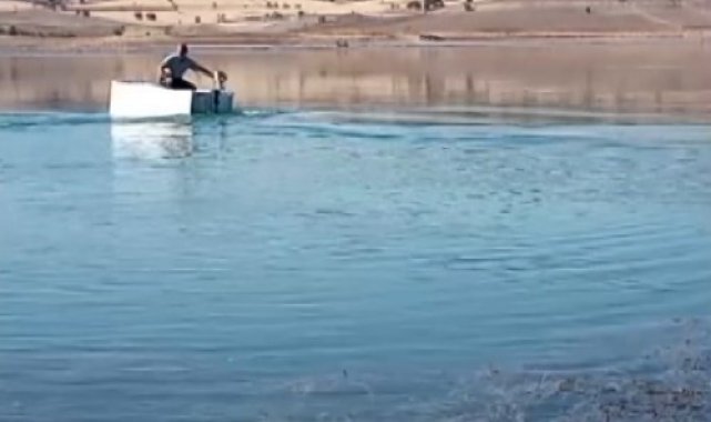 Ankara'da yaşayan Abdülmetin Çökmez, hurda buzdolaplarına motor taktırarak yaptığı kayıkla Koyunbaba Barajı'nda gezintiye çıkıyor. Yaklaşık 1 ay önce yaptığı kayıkla barajda turlayan Çökmez, görenlerin hayret dolu bakışları arasında keyifli anlar yaşıyor.