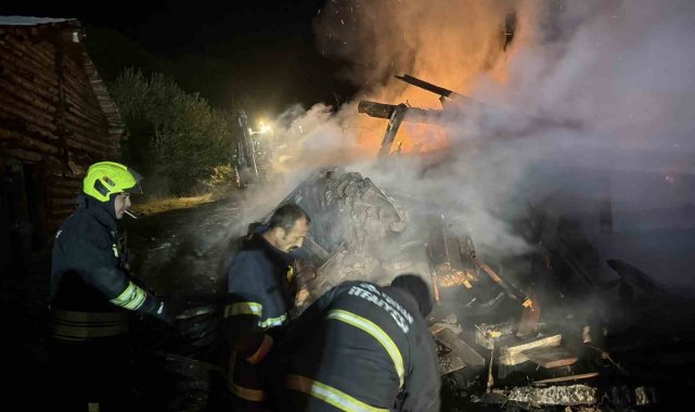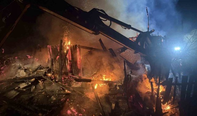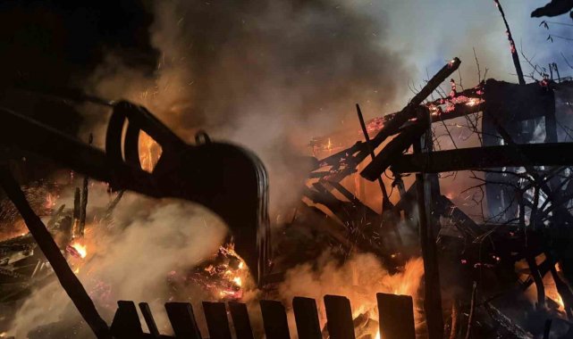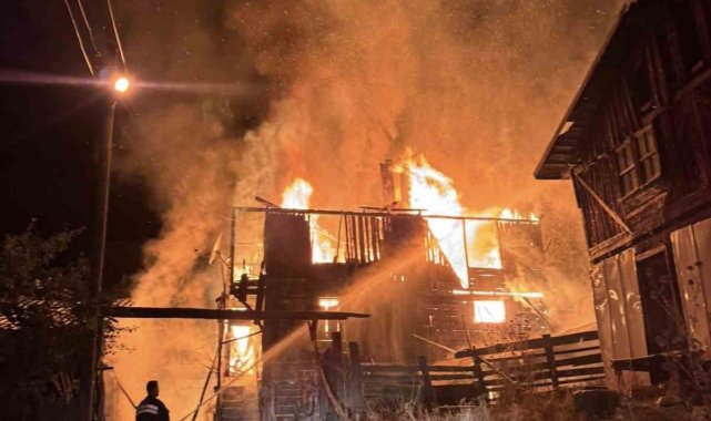 Bolu'da çıkan yangında 2 katlı ahşap ev tamamen yanarak küle döndü.
