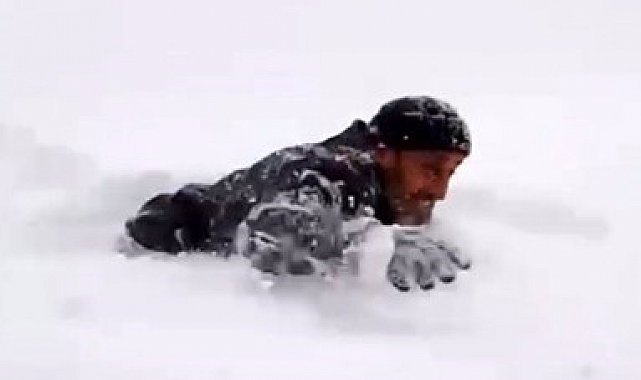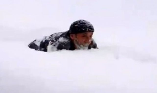 2 metre kalınlıktaki karda yürüyemeyince yüzerek evine gidebildi