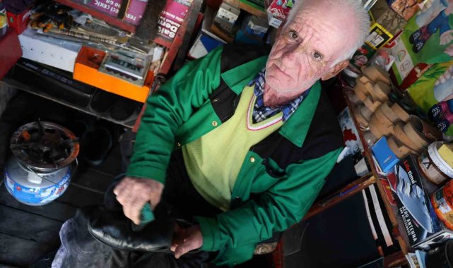 2 metrekarede 45 yıllık ayakkabı boyacılığı