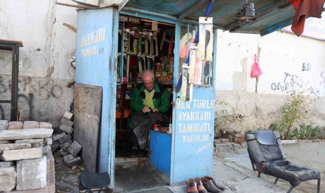 Elazığ'da 73 yaşındaki Hasan Aydın, 2 metrekarelik barakada 45 yıldır babasından devraldığı ayakkabı boyacılığı mesleğini sürdürüyor.
