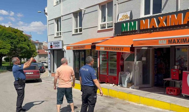 Eskişehir'de 2'nci kattan market tentesine ardından da yere düşen 42 yaşındaki kadının, ayakta durmakta güçlük çeken yakınları konuyla alakası olamayan malı zarar gören esnafa tepki gösterdi.