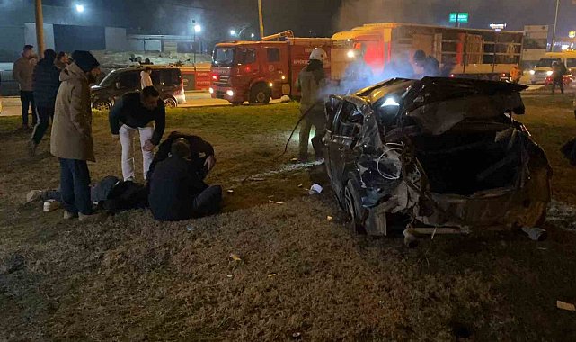 Kaza saat 22.30 sıralarında Bursa-Ankara karayolu üzeri Hikmet Şahin Köprülü Kavşağı girişinde meydana geldi. Selimcan P. (19) yönetimindeki 16 CDS 27 plakalı otomobil, sürücüsünün kontrolünden çıkarak önünde seyreden Volkan V. (38) yönetimindeki 43 AFL 997 plakalı otomobile arkadan çarptı. Çarpmanın etkisiyle taklalar atan araç yoldan çıkarak durdu. Taklalar atan araçtan fırlayan sürücü ile araçtaki yolcu Furkan K. (19) yaralandı. Yaralılar kaza yerine sevk edilen Ambulanslarla İnegöl Devlet Hastanesine kaldırıldılar.