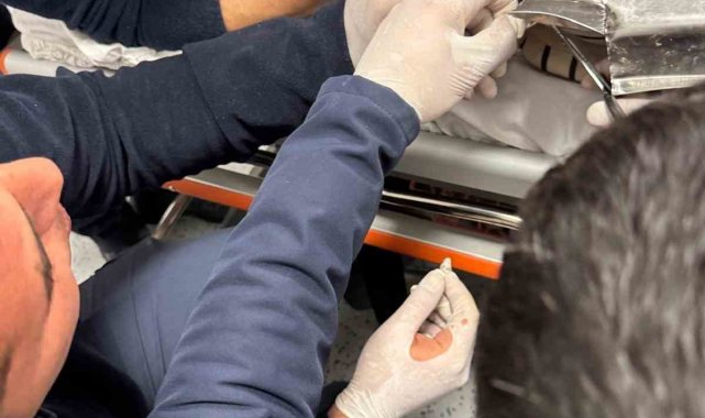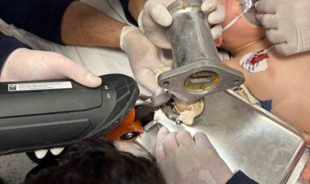 Antakya ilçesinde elini kıyma makinesine sıkıştıran 2 yaşındaki A.K.'nin ailesi durum üzerine evlatlarını Hatay Eğitim ve Araştırma Hastanesi'ne kaldırdı. Sağlık ekipleri durumu itfaiye ekiplerine bildirerek yardım istedi. İhbar üzerine hastaneye giden ekipler çocuğun elinin sıkıştığı kıyma makinesini kurtarmak için hastane yatağında çalışma başlattı. Ekiplerin titiz ve özenli çalışmalarının ardından kıyma makinesi çıkartıldı. Elinde kırık ve ezilme oluşan A.K.'ye sağlık ekipleri müdahale etti. Sağlık durumunun iyi olduğu öğrenilen çocuğun, annesi kıyma makinesini kullanırken elini kıyma makinesine soktuğu öğrenildi.