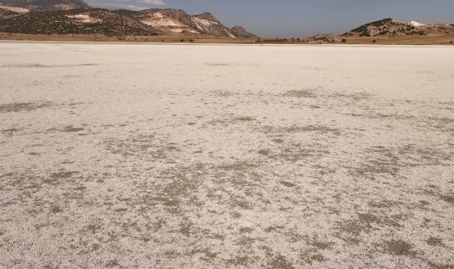 Burdur'un Yeşilova ilçesinde bulunan Yarışlı Gölü, 2 sene öncesine binlerce flamingoyu ağırlarken şimdilerde göl tamamen kurudu, gölün tabanında sadece göle gelen misafirlerin ayak izleri kaldı.