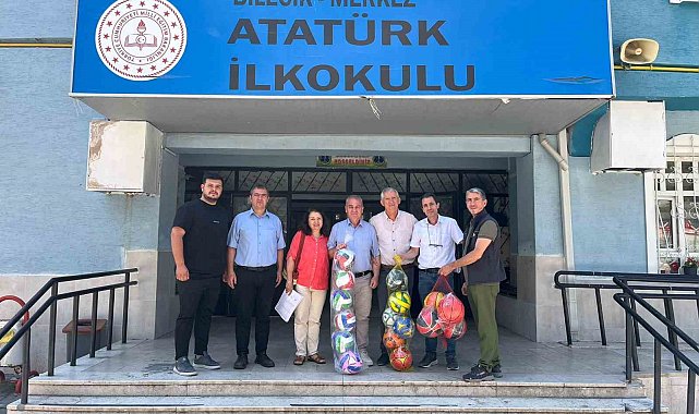 Bilecik'te 20 kilogram atık pil toplayan çocuklara 16 adet futbol, basketbol ve voleybol topu hediye edildi.