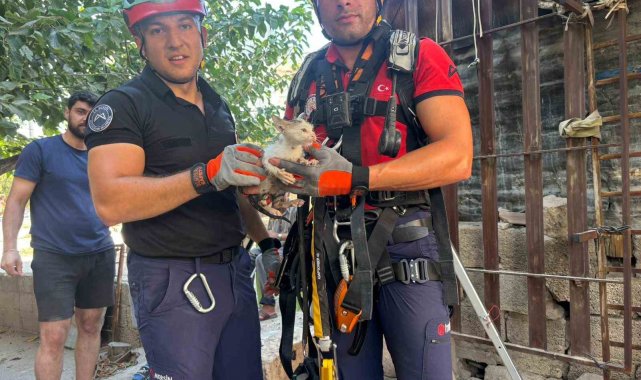 Mersin'de yaklaşık 20 metre derinliğindeki kuyuya düşen yavru kedi itfaiye erlerince kurtarıldı.