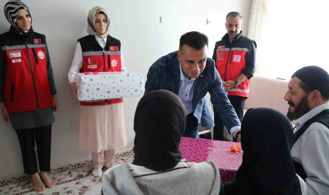 Sosyo-ekonomik destek alan vatandaşlara yönelik gerçekleştirilen çalışma kapsamında, Türk Kızılayı iş birliğiyle 61 ailedeki toplam 200 çocuğa bayramlık hediyeler dağıtıldı.