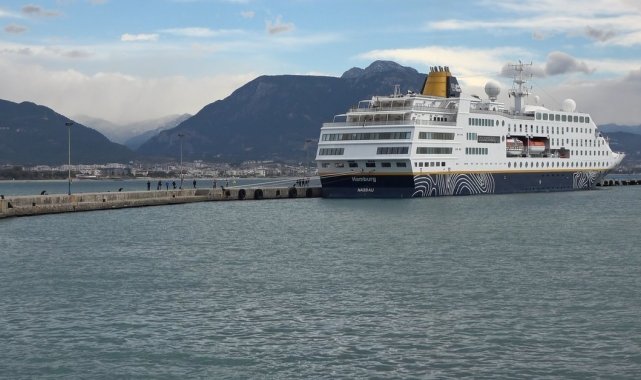 Antalya'nın Alanya ilçesinde 2025 yılının ilk kruvaziyer yolcu gemisi Alanya iskelesine demir attı.