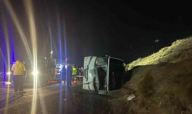 Çankırı'da, otobüsün devrilmesi neticesinde 23 fabrika işçisinin devrildiği kaza anın güvenlik kamerası görüntüsü ortaya çıktı.