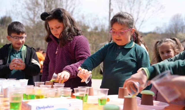 Düzce Belediyesi Bilim Merkezi ve Çocuk Üniversitesi işbirliğinde düzenlenen şenlikte 6 ayrı stant kuruldu. 3D kalem tasarımı atölyesinde Türk bayrağı rozeti yapan çocuklar, geometri tahtasında ise lastiklerle şekiller oluşturdular. En ilgi çeken stantlardan biri ise yanardağ atölyesi oldu. Karbonat ve sirkenin buluşması ile oluşan kimyasal tepkimeyi gözlemleyen öğrenciler, asit ve bazların birbirleriyle nasıl etkileşime girdiğini deneyerek kavradılar. Su piyanosu atölyesinde öğrenciler, içindeki kablolar sayesinde suya her dokunduklarında birer tuş gibi kullanarak ekrandaki oyunu yönettiler ve suyun elektriği ilettiğini eğlenerek öğrendiler. Çocukların bilim ve teknoloji ile buluştuğu etkinlikte VR gözlük deneyimi de yaşayan öğrenciler, büyük bir heyecan ve şaşkınlık yaşadı.