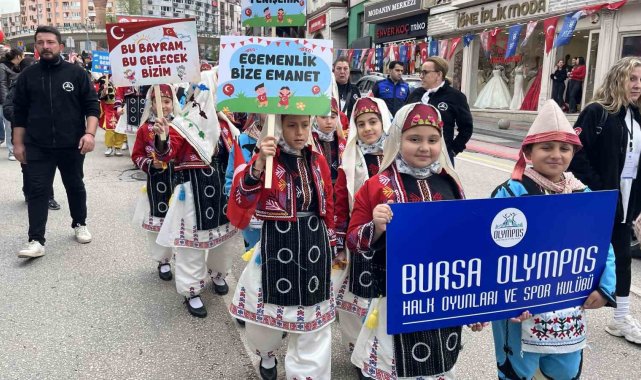 Bursa'da 23 Nisan Ulusal Egemenlik ve Çocuk Bayramı kutlamaları kapsamında kortej yürüyüşüne gencinden yaşlısına yüzlerce kişi katıldı.