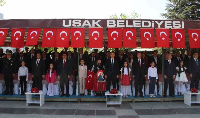 Uşak'ta düzenlenen 23 Nisan Ulusal Egemenlik Ve Çocuk Bayramı törenine Uşak Valisi Naci Aktaş, Uşak Belediye Başkanı Özkan Yalım, Uşak Cumhuriyet Başsavcısı İsmet Çınar, İl Emniyet Müdürü Mehmet Ali Kolcu, İl Jandarma Komutanı Kıdemli Albay Fahri Semiz, Uşak Üniversitesi Rektörü Prof. Dr. Ekrem Savaş, kurum müdürleri, siyasi parti temsilcileri ve vatandaşlar katıldı.