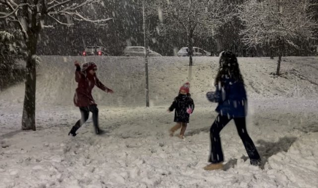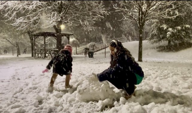 248 rakımlı ilçede etkili olan kar yağışı çocukları sevindirdi